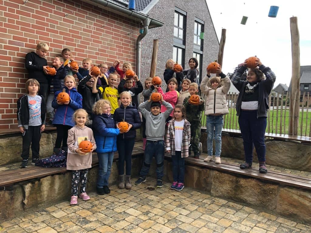 Dafür haben die Kinder der Kreativ-AG fleißig Kürbisse ausgehöhlt und sie mit schaurigen Gesichtern verziert. Das war ganz schön anstrengend. Neben der Schnitzerei gab es deshalb zur Stärkung leckeres Kürbisbrot zum Naschen. Die Mühe hat sich mehr als gelohnt. Die Kürbisse zieren jetzt unseren Schulgarten.