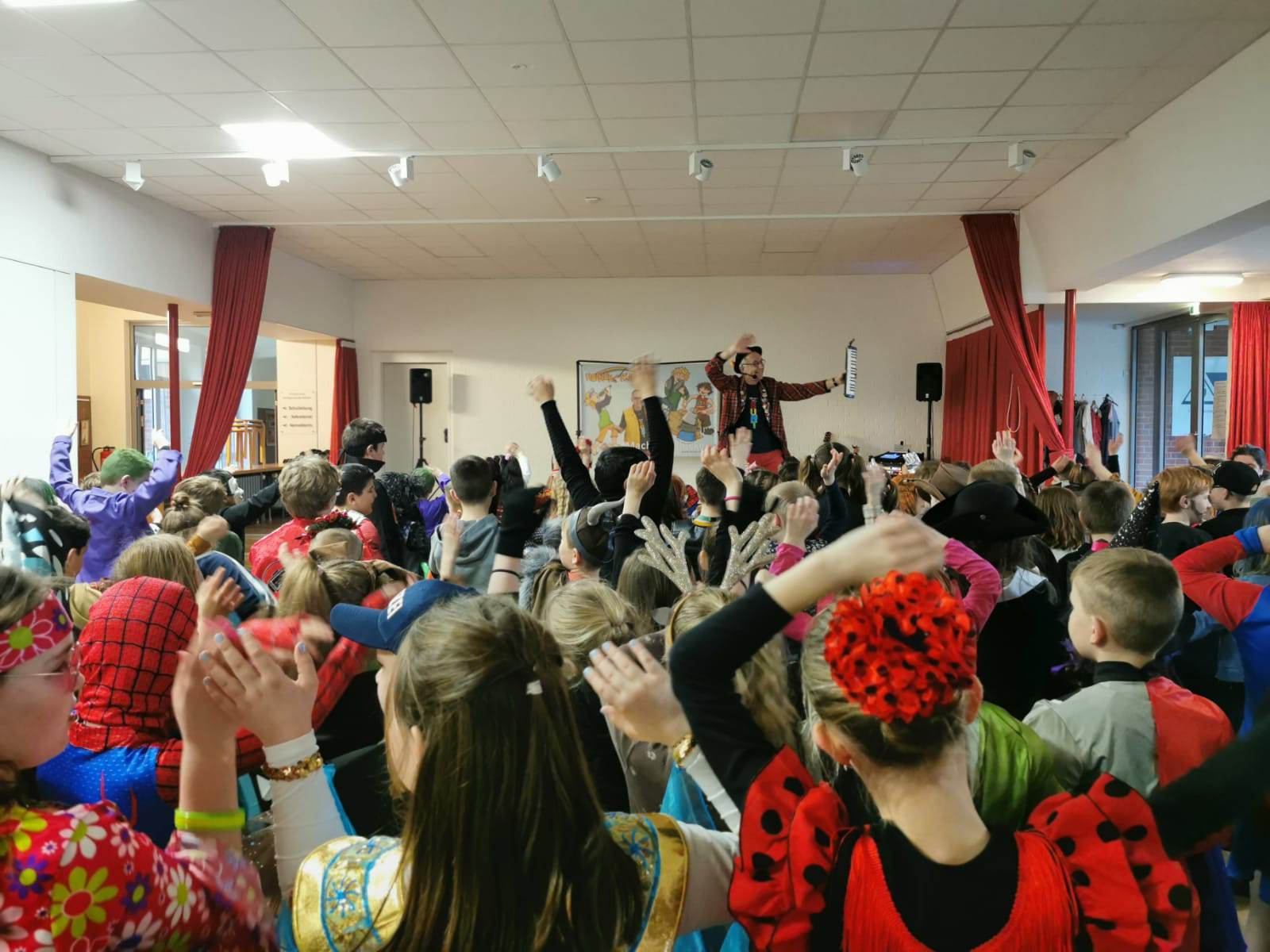 Ein Highlight war der Auftritt vom Kinderliedermacher Heiner Rusche. Auf der Bühne sorgte er mit seiner Gitarre und seiner Ukulele für gute Stimmung. Die Musik wurde aufgedreht und es wurde getanzt und gesungen. Da merkte auch der ein oder andere Nachbar, dass in der Schule "die Post abgeht".
