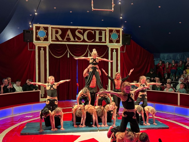 Am Montag gab es auf dem Weg zur Schule viele staunende Gesichter, da schon das große Zirkuszelt der Familie Rasch gegenüber der Schule aufgebaut war.