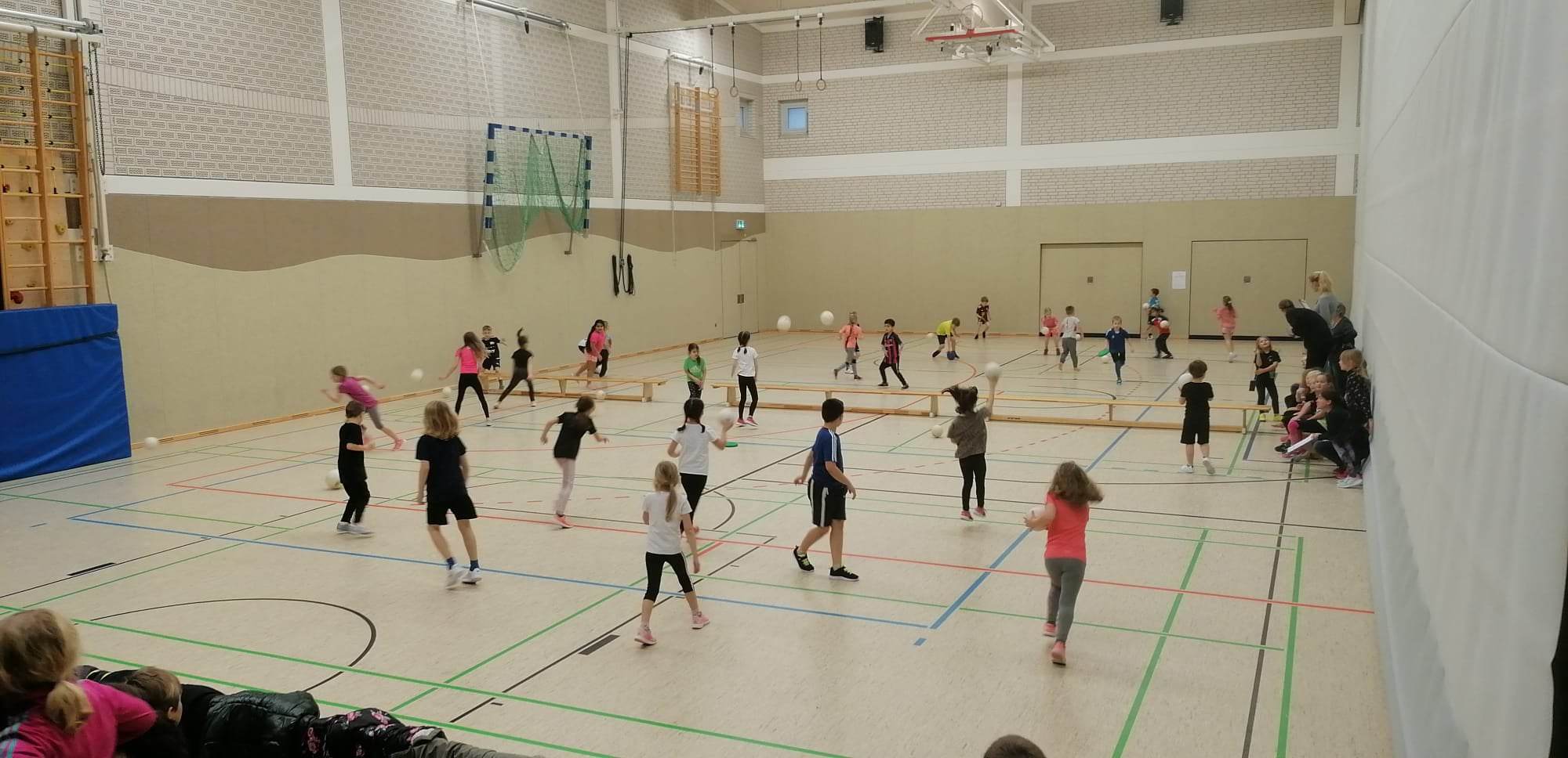 In der großen Dreifeldsporthalle in Rehden hieß es dann für alle Kinder der Jahrgänge 1 und 2 „Haltet die Seiten frei“. Die Kinder aus den Klassen 3 und 4 spielten hingegen „Völkerball“. Alle Klassen hatten zuvor im Sportunterricht fleißig trainiert und gaben den gesamten Schulvormittag über alles, um Punkte für ihr Team zu sammeln. Natürlich war zwischen den Spielen immer genügend Zeit, um zu frühstücken, sich frei zu beschäftigen oder andere Teams anzufeuern. Unsere Lehrkräfte unterstützten die Veranstaltung als Schiedsrichter.