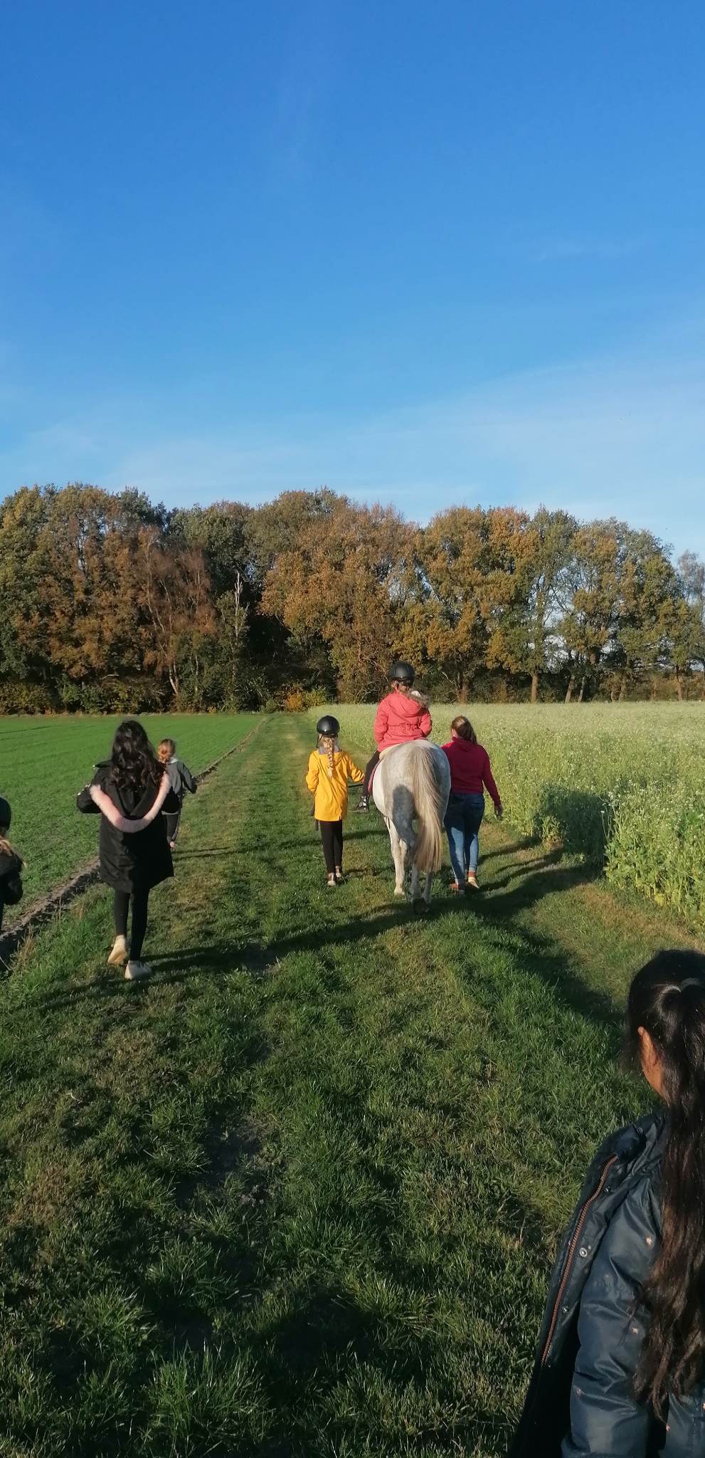 Daher war es in dieser Woche so weit: Der erste kleine "Ausritt" stand an! Mit den Ponys Kathaleen und Whisper begaben sich die Kinder bei bestem Herbstwetter auf einen Spaziergang, bei dem jedes Kind führen und ein kurzes Stück auf dem Pferd sitzen durfte. Zwischendurch gab es immer mal ein paar Quizfragen rund um"s Pferd, die von den Kindern beantwortet werden mussten. Allen hat es viel Spaß gemacht!